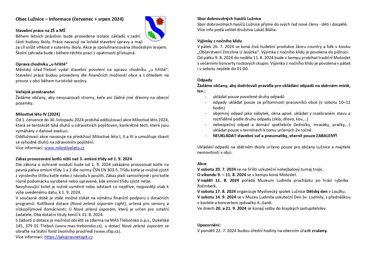 Informační leták červenec + srpen 2024 Typ: PDF dokument, Velikost: 228.39 kB
